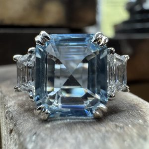 Platinum Aquamarine and Diamond 3 Stone Dress Ring